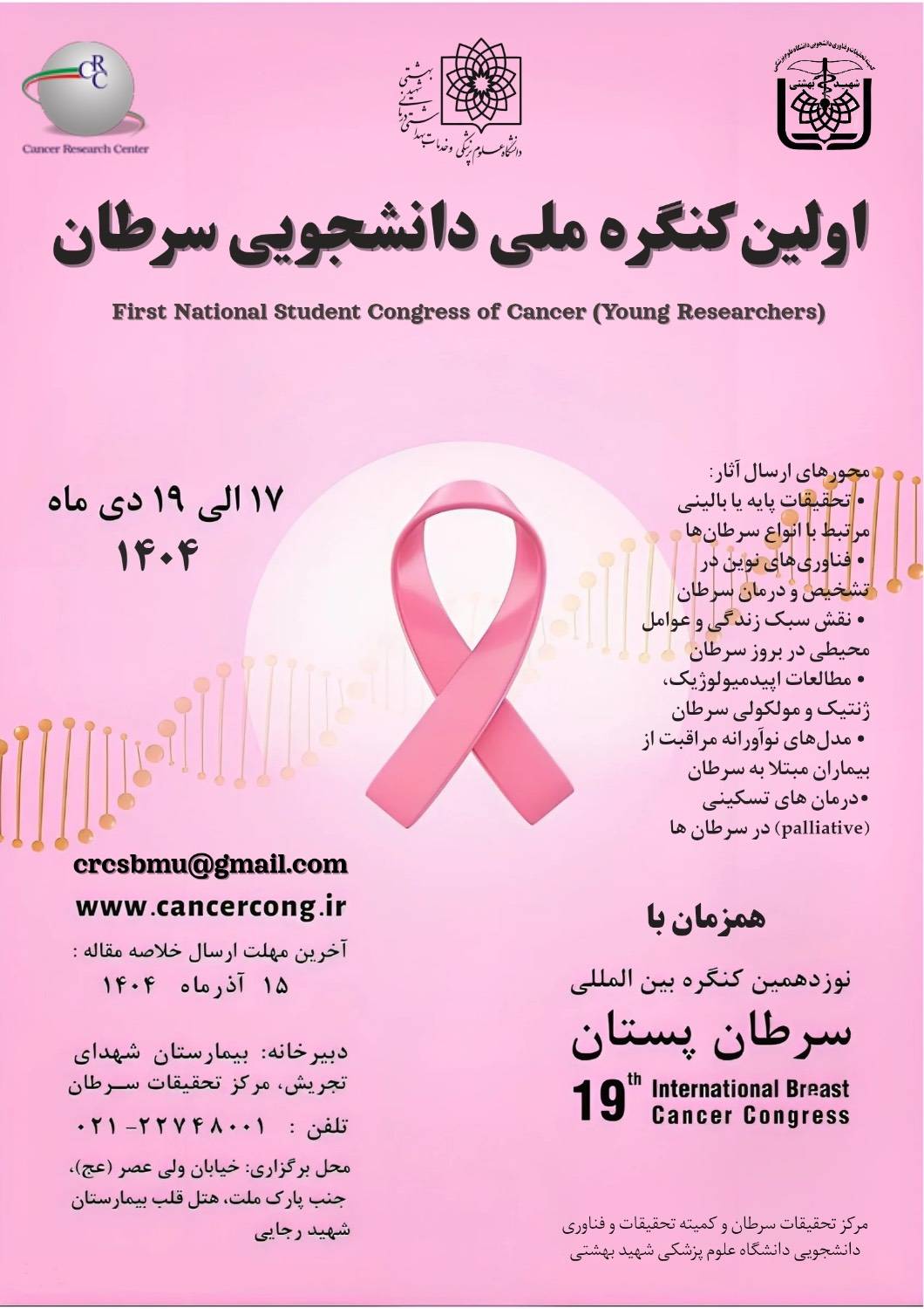 اولین کنگره ملی دانشجویی سرطان با هدف ارتقای دانش تخصصی، تقویت توان پژوهشی و ایجاد بستری برای تبادل تجربه میان دانشجویان و پژوهشگران جوان سراسر کشور،به میزبانی مرکز تحقیقات سرطان و کمیته تحقیقات دانشجویی دانشگاه علوم پزشکی شهید بهشتی برگزار می‌شود.