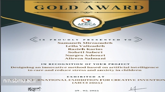 دکتر لیلا ولی زاده ( هیئت علمی پرستاری دانشگاه) و سمانه میرزا زاده دانشجوی کارشناسی ارشد پرستاری کودکان و تیم همراهشان موفق به کسب مدال طلای مسابقات جهانی قاره آفریقا شدند.این مسابقات به میزبانی قاره آفریقا در تاریخ 22 ماه می 2025 برگزار شد. در جریان برگزاری این مسابقات جهانی (Africa International Exhibition of Creative Inventions 2025) بیش از 132 مخترع از 52 کشور از جمله استرالیا، آمریکا، چین، انگلیس، سنگاپور، ژاپن، کانادا، لهستان و… شرکت داشتند. تیم ایرانی متشکل از لیلا ولی زاده، سمانه میرزا زاده و تیم همراه علمی و فنی - مهندسی در این مسابقات شرکت کردند. اختراعات ازنظر نوآوری، ماهیت طرح، تکنولوژی به کار رفته، تأثیر اجتماعی و اقتصادی، فرصت های بازار مورد ارزیابی و نمره دهی هیئت داوران جشنواره قرار گرفت و مدال طلای این جشنواره جهانی را تیم ایرانی از آن خود کرد. حامی اصلی این جشنوارهThe Organization for Creativity, Innovation and Invention Promotion, International Federation of Inventors' Associations, World Invention Intellectual Property Associations, Malaysia Innovation Invention and Creativity Association, Korea University Invention Association, Association of African Inventors and Innovators و... بوده است.گفتنی است طرح ارائه شده در این جشنواره یک ربات نوآورانه بوده مبتنی بر هوش مصنوعی برای مقابله با استرس و اضطراب و برای مراقبت و کاهش استرس و اضطراب در کودکان طراحی شده است که با استفاده از فناوریهای ترکیبی شامل نظارت بر ضربان قلب، تنفس، شبیه سازی حرکات قفسه سینه و پردازش سیگنال مبتنی بر هوش مصنوعی و با ادغام دقیق اجزای سخت افزاری و نرمافزاری، ایمنی و عملکرد مطلوب را تضمین کرده و به بهبود وضعیت عاطفی کودکان در محیطهای درمانی بویژه در زمان اجرای پروسیجرهای درمانی کمک میکند و به کاهش استرس و اضطراب در کودکان کمک کرده و میتواند فشار و بار کاری کادر درمان را نیز کاهش دهد و به بهبود کیفیت خدمات درمانی منجر شود. دانشکده پرستاری و مامایی موفقیت ایشان را تبریک عرض نموده و آرزوی توفیق روز افزون را از خداوند متعال برای هر دو فرهیخته گرامی خواستار است.