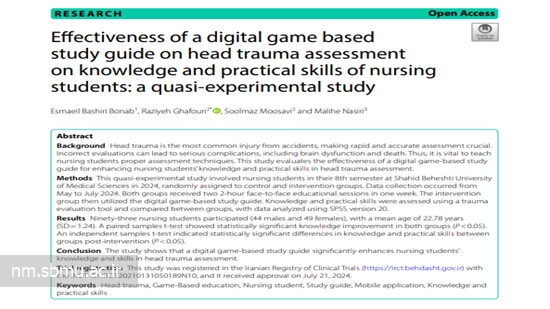پادکست طرح پژوهشی با عنوان : Effectiveness of a digital game based study guide on head trauma assessment on knowledge and practical skills of nursing students