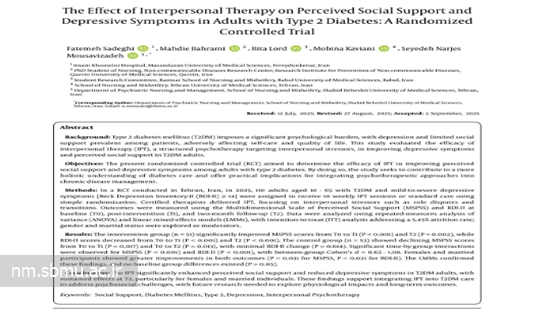 پادکست طرح پژوهشی با عنوان : The Effect of Interpersonal Therapy on Perceived Social Support and Depressive Symptoms in Adults with Type 2 Diabetes A Randomized Controlled Trial