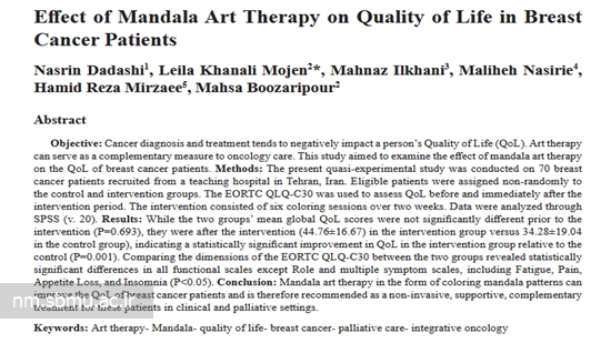 پادکست طرح پژوهشی با عنوان :Effect of Mandala Art Therapy on Quality of Life in Breast Cancer Patients