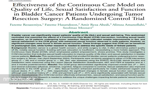 پادکست طرح پژوهشی با عنوان: Effectiveness of the Continuous Care Model on Quality of Life, Sexual Satisfaction and Function in Bladder Cancer Patients Undergoing Tumor Resection Surgery: A Randomized Control Trial