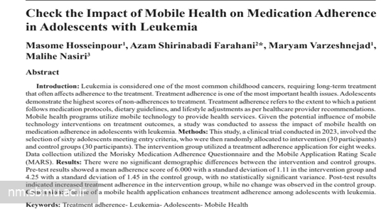 پادکست طرح پژوهشی با عنوان: Check the Impact of Mobile Health on Medication Adherence in Adolescents with Leukemia
