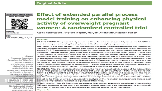 پادکست طرح پژوهشی با عنوان: Effect of extended parallel process model training on enhancing physical activity of overweight pregnant women: A randomized controlled trial