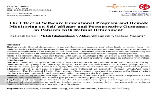 پادکست طرح پژوهشی با عنوان : The Effect of Self-care Educational Program and Remote Monitoring on Self-efficacy and Postoperative Outcomes in Patients with Retinal Detachment