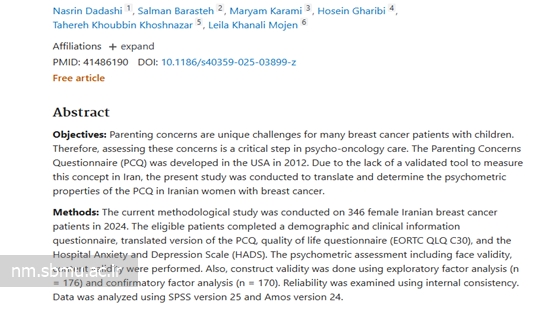 پادکست طرح پژوهشی با عنوان: Translation & psychometrics of the Parenting Concerns Questionnaire (PCQ) in Iranian woman with breast cancer