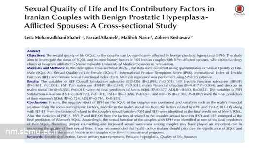 پادکست طرح پژوهشی با عنوان:Sexual Quality of Life and Its Contributory Factors in Iranian Couples with Benign Prostatic HyperplasiaAfflicted Spouses: A Cross-sectional Study