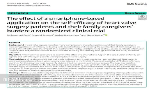 پادکست طرح پژوهشی با عنوان:The effect of a smartphone-based application on the self-efficacy of heart valve surgery patients and their family caregivers` burden: a randomized clinical trial