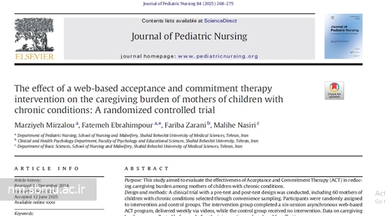 پادکست طرح پژوهشی با عنوان:The effect of a web-based acceptance and commitment therapy intervention on the caregiving burden of mothers of children with chronic conditions: A randomized controlled trial