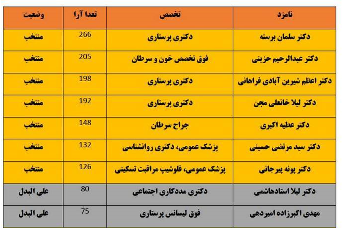اساتید محترم سرکار خانم دکتر اعظم شیرین آبادی فراهانی و سرکار خانم دکتر لیلا خانعلی مجن انتخاب شایسته شما را به عنوان اعضای اصلی هیئت مدیره انجمن علمی مراقبت تسکینی کشور را تبریک عرض نموده و از خداوند متعال توفیق روز افزون در اعتلای حرفه و ارتقا کیفیت زندگی و مراقبتی بیماران را خواستاریم.